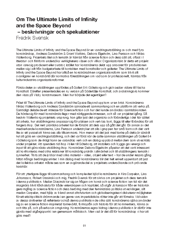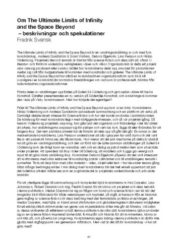Katalogtext. The Ultimate Limits of Infinity – beskrivningar och spekulationer