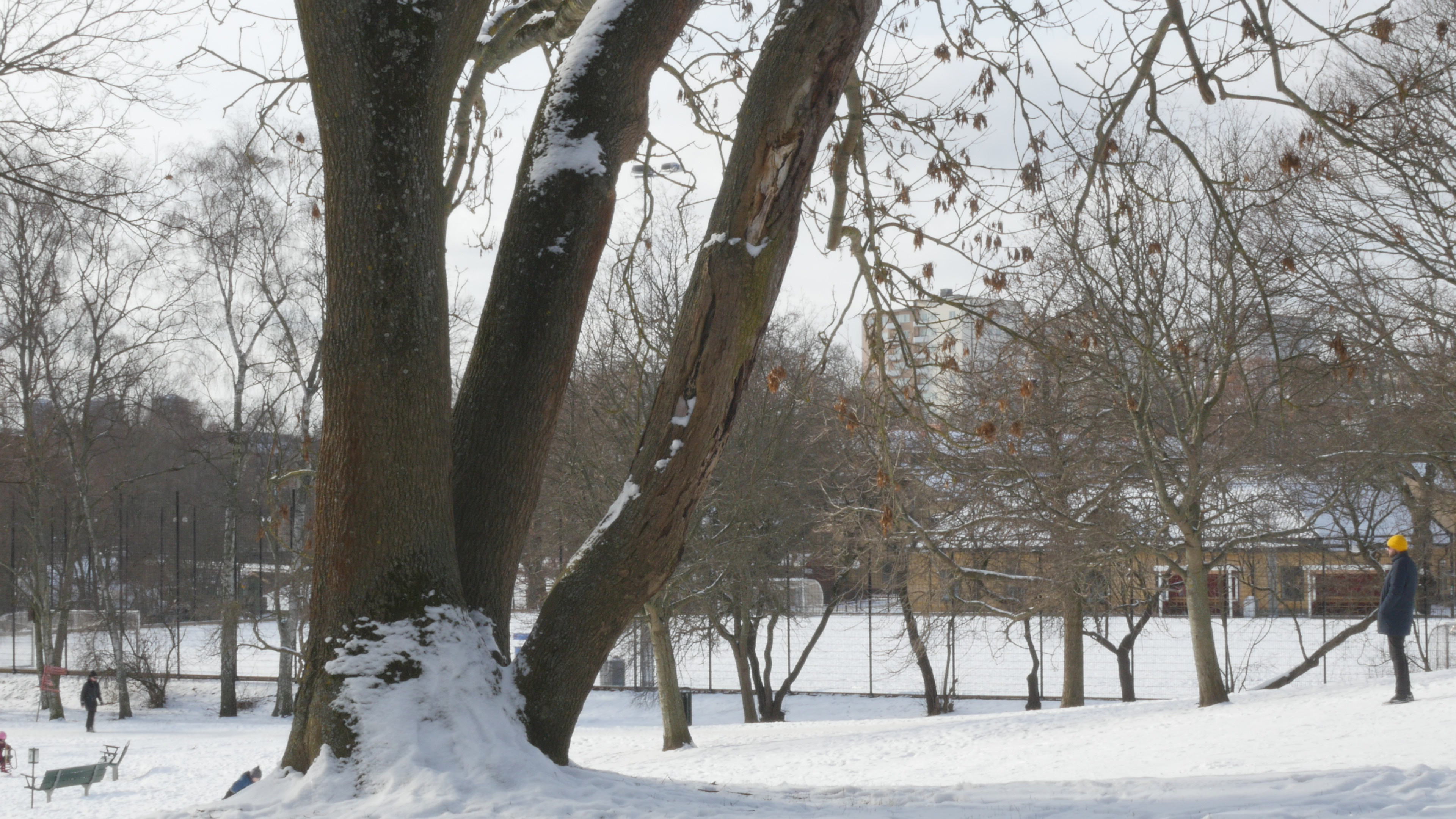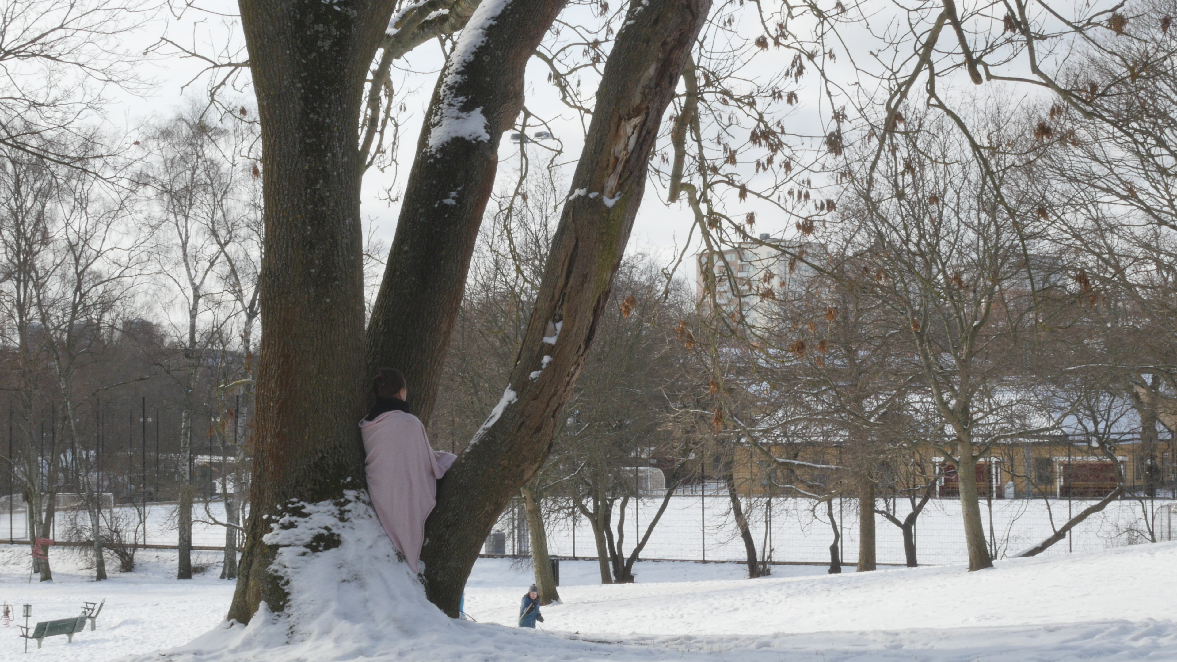 Sitting in an ash tree at Långholmen on 24 February 2018, performing for camera for the Stockholm Tree Calendar (2018), video 9 min. 56 sec. (as well as a testing version (6 min. 3 sec.)