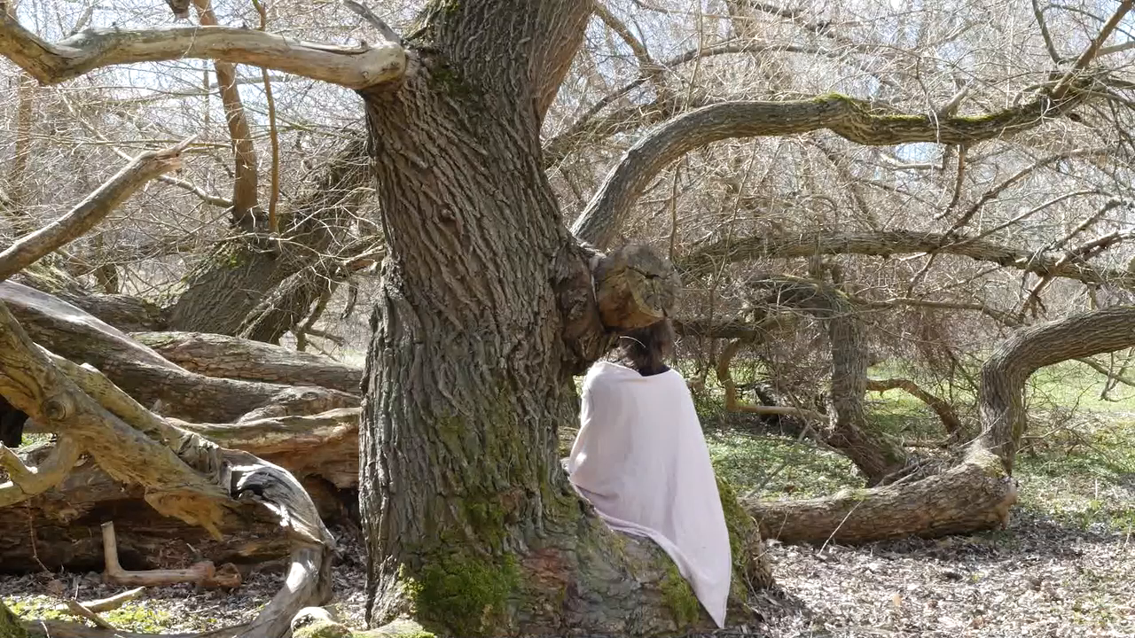 Sitting on and with an old willow in Ladugårdsgärdet on 21 April 2018, performing for camera for the Stockholm Tree Calendar (2018). Video: Willow in April - Ladugårdsgärdet (13 min. 9 sec.)