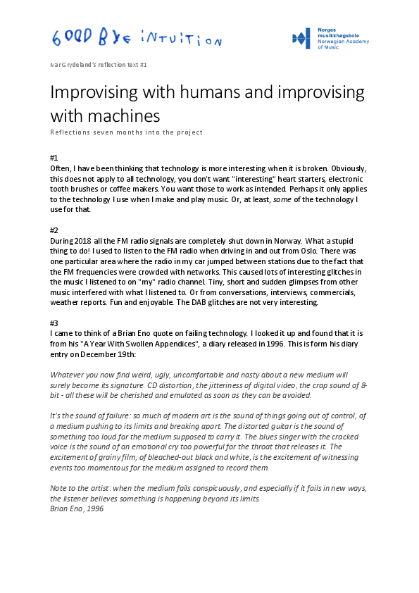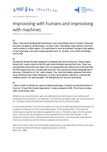 Ivar Grydeland's reflection text 1