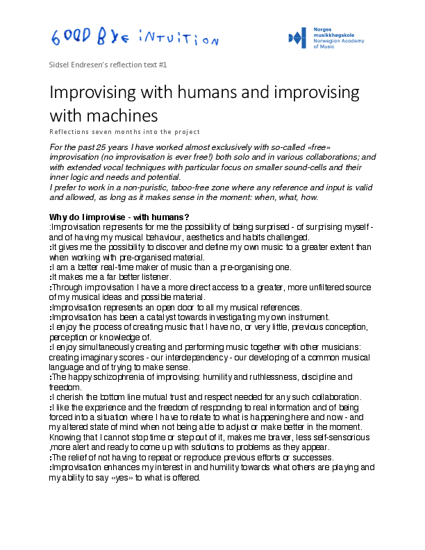 Sidsel Endresen's reflection text 1