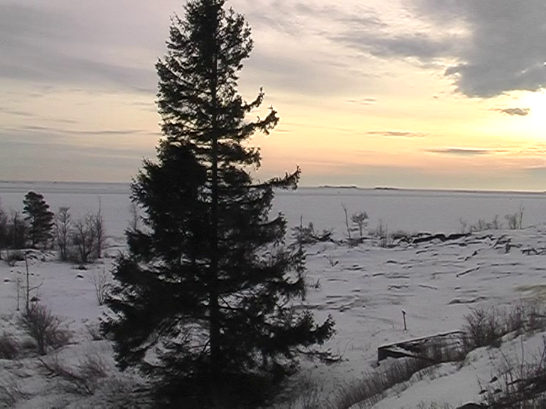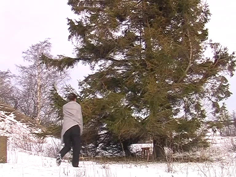 (3 x 28 min.) DV 4:3 This triptych with a spruce on Harakka island is a documentation of a performance. I sit under the tree once a week for a year, between 6 January 2007 – 3 February 2008). The video is recorded from three perspectives: from the hill, the path and from underneath the tree.