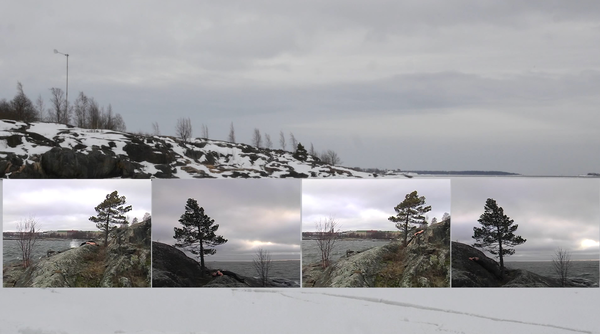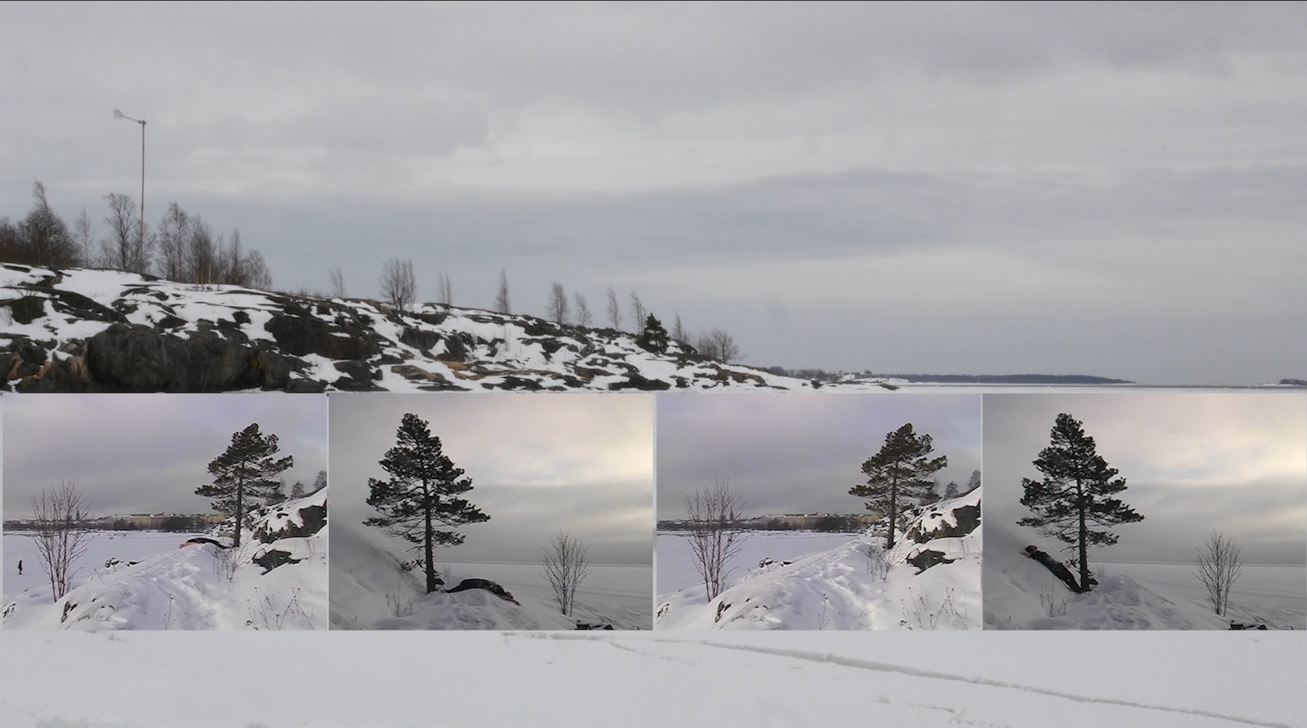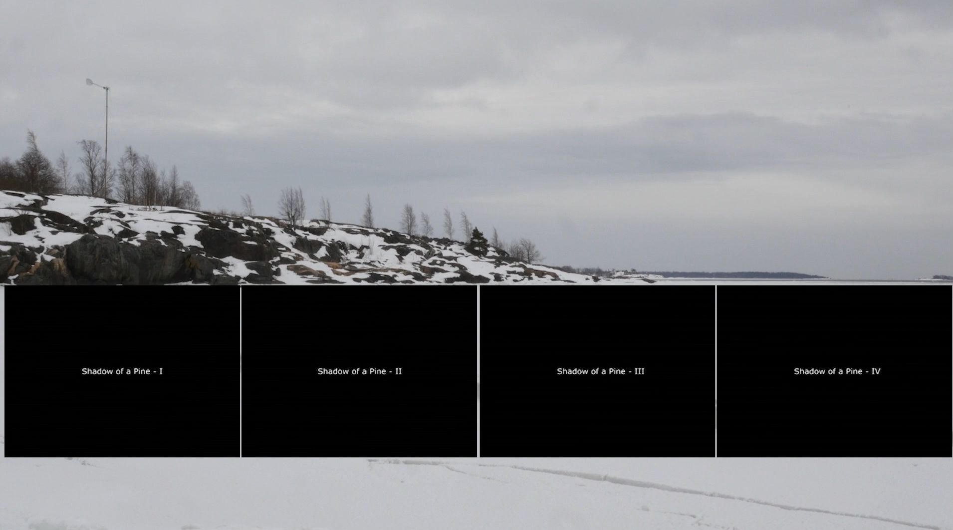 The video The Pine on the Shore Revisited (17 min. ) records an attempt on 19 March 2018 at revisiting the site where "Shadow of a Pine 1-4" (2007) was performed during 2006, with that 4-channel video installation inserted into it.