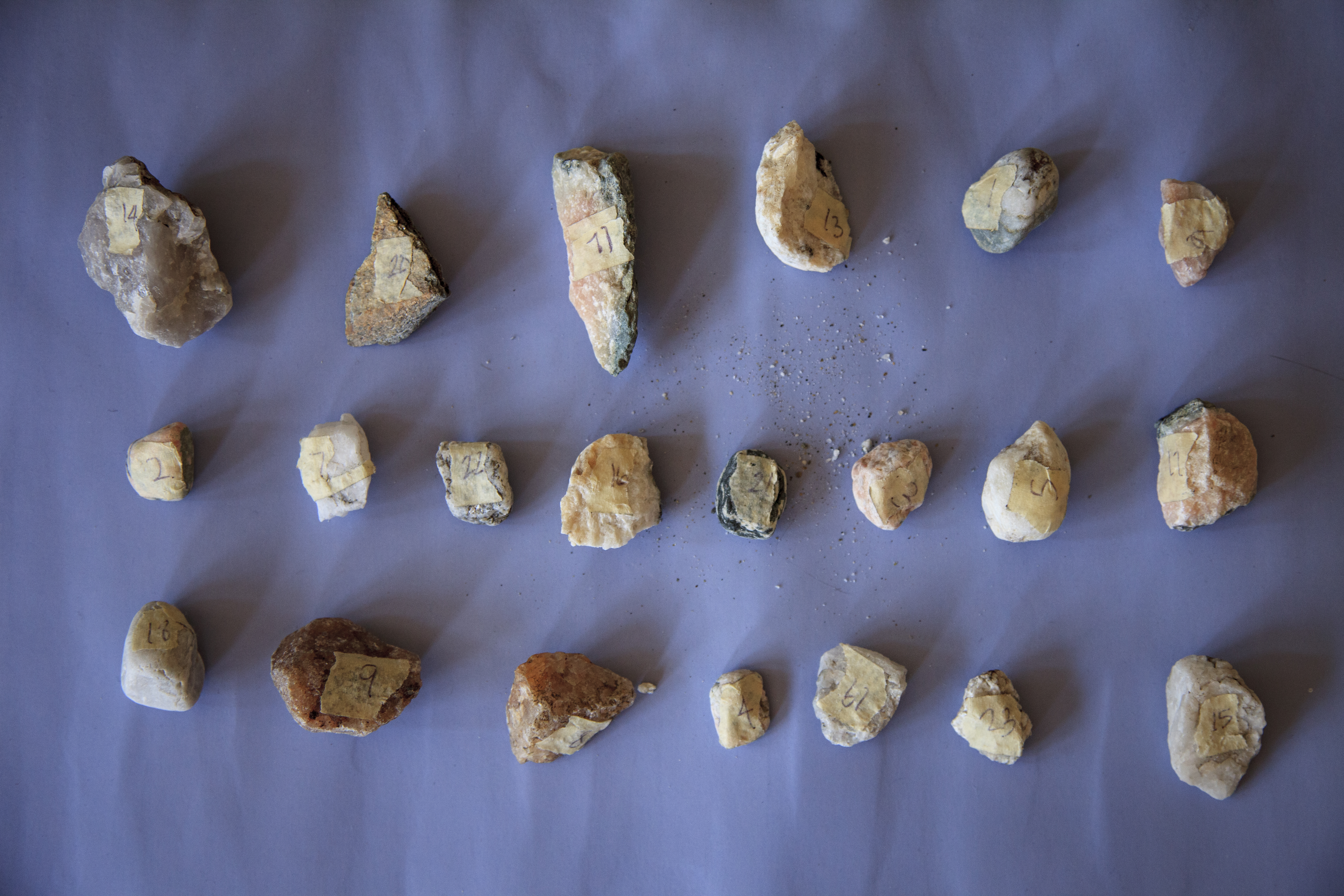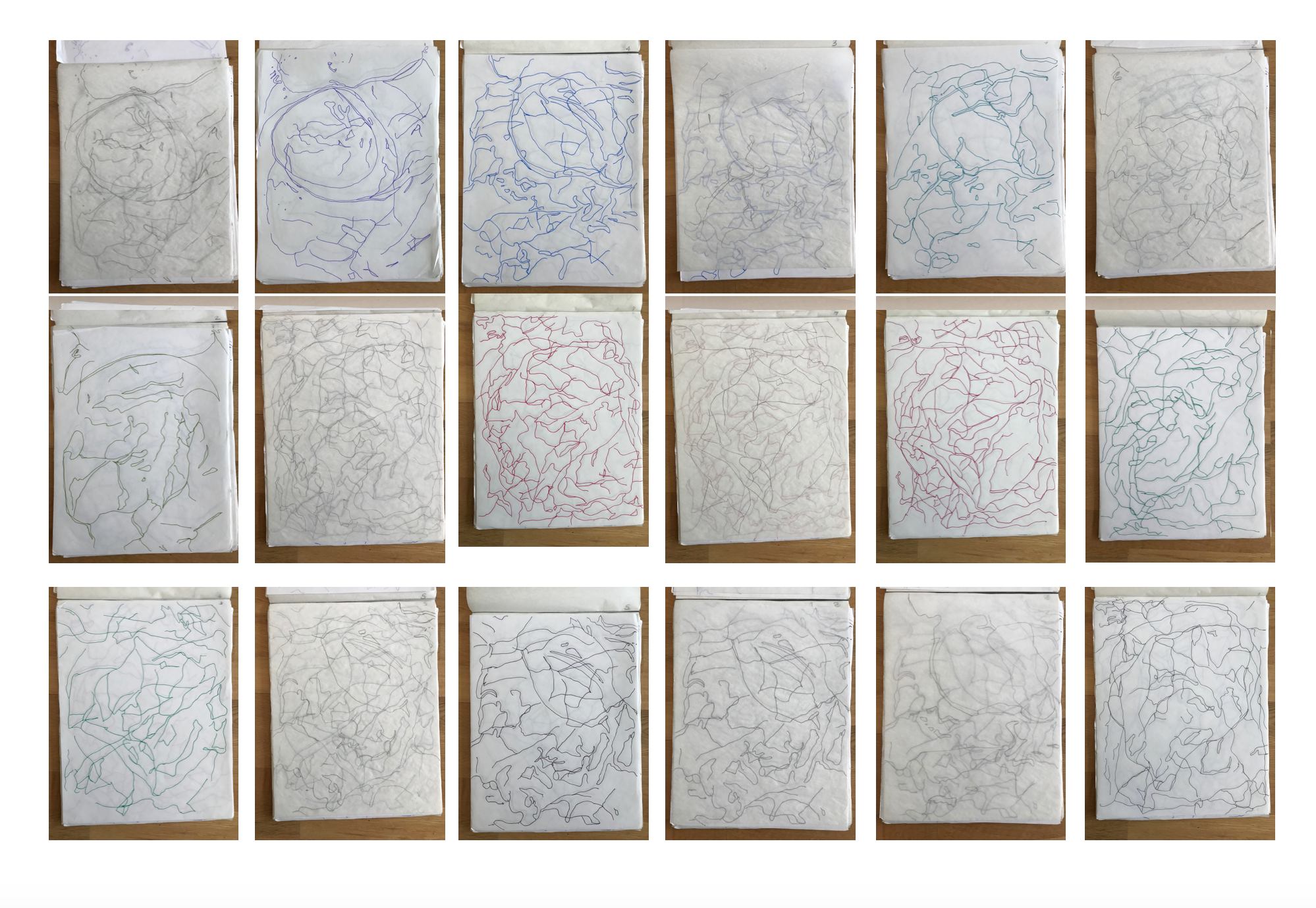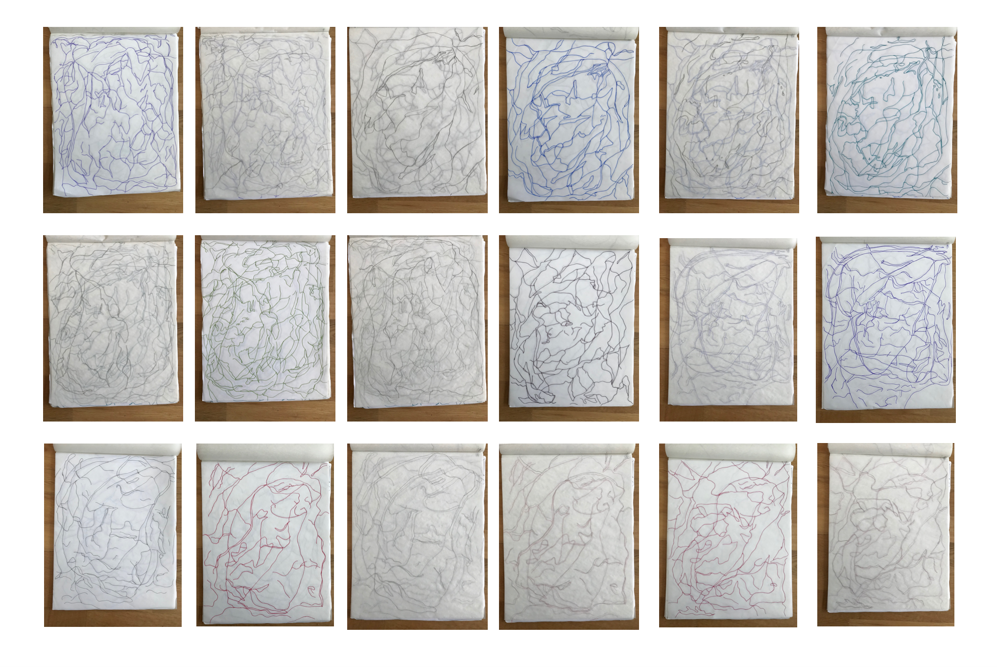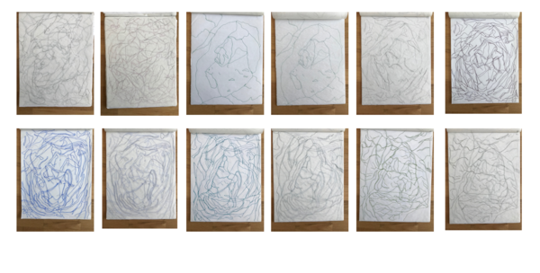 Visual drawing of the rock specimens. The rock faces were drawn following a rotational twist of the stone, to mimic the way the earth rotates. The fissures and shapes were translated into 2D form. Then the drawings were traced over the drawings.