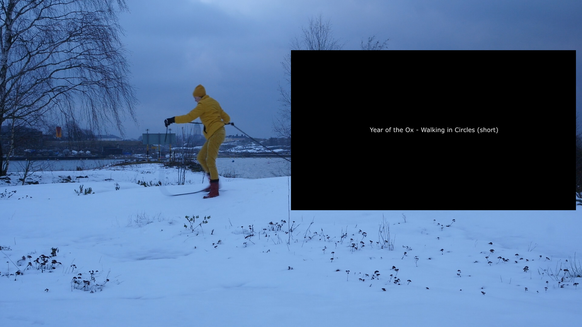 This video compilation consists of a) Year of the Ox - Walking in Circles (short), and b) Day and Night of the Ox, inserted in the recording of a revisit, on 20.12.2018, to the site where they were performed a) weekly between 25.1.2009 and 6.2.2010 and b) every two hours between 1.5.2009 6 pm and 2.5.2009 6 pm.