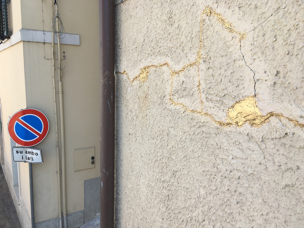 crepa_segnoThe large crack in the building on the piazza was restored by using Kin Tsugi based technique. The group Corale and the local population supported the work.