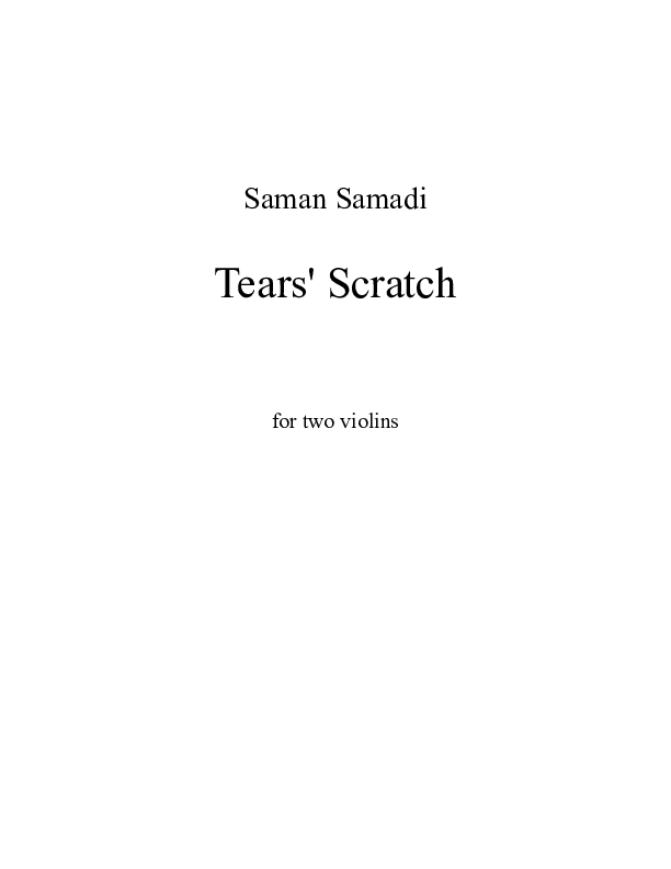 This composition was written for two violins, in Tehran, Iran, in 2012, and was performed and recorded by Miranda Cuckson and Austin Wulliman, that was produced by Kristin Samadi, in October 2016.