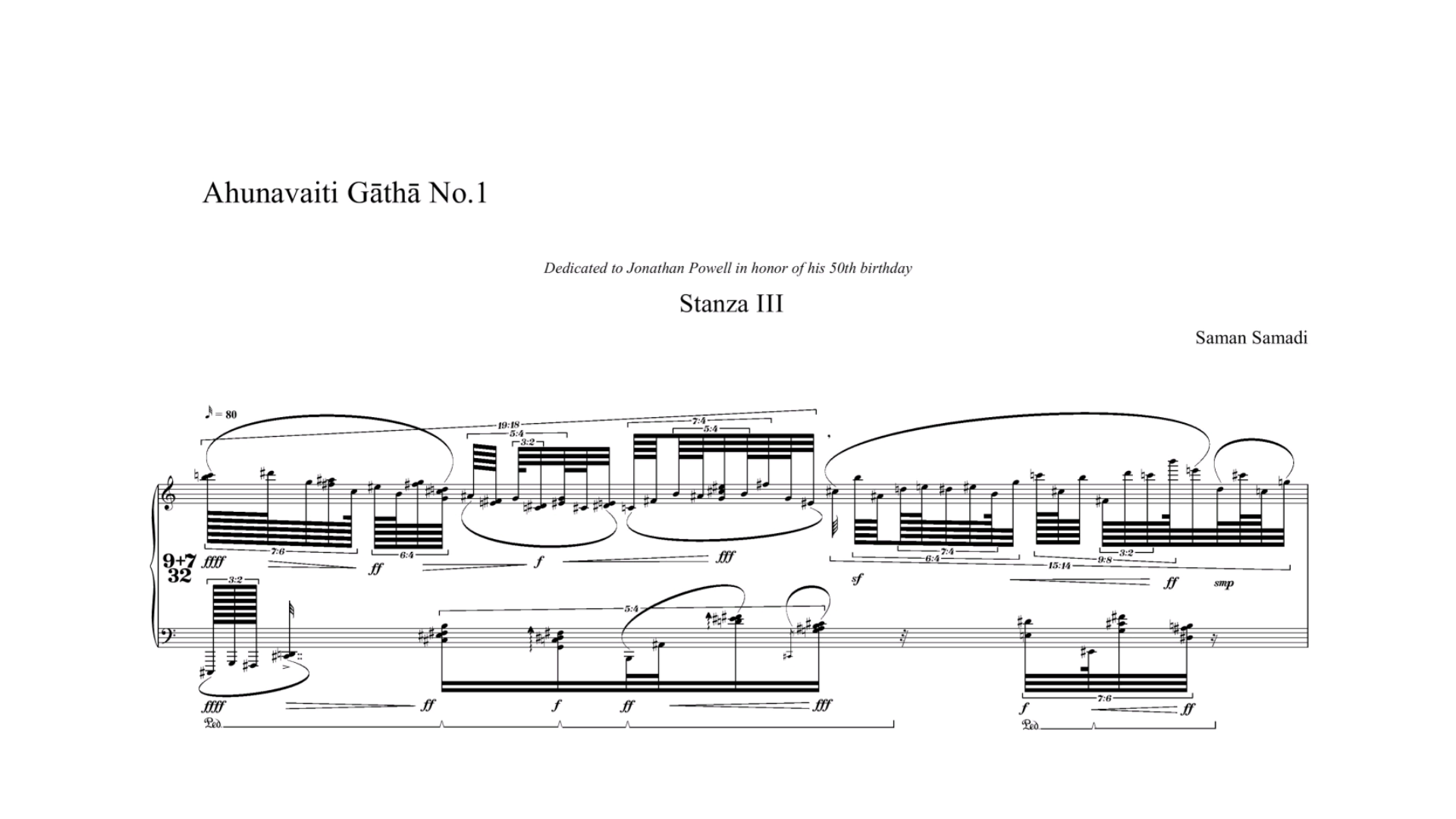 Saman Samadi - Ahunavaiti Gāthā no.1, Stanza III (score)