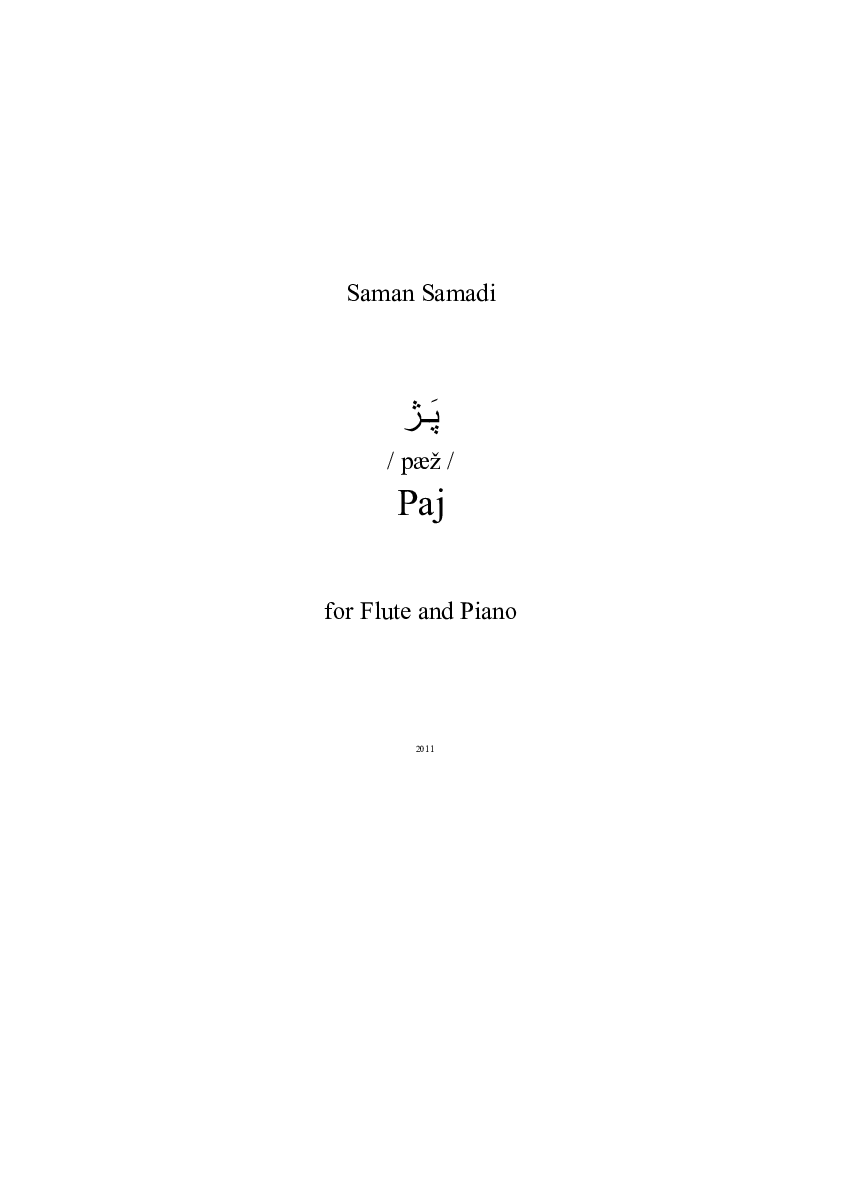 '14. Samadi, Saman. Paj: for flute and piano. Performed by Nicole Camacho, and Kristin Samadi. Stony Brook: SUNY Stony Brook, Staller Center, 08/04/2014.