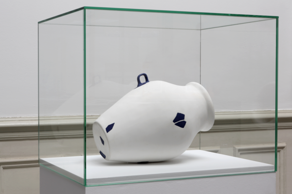 History and historiography are inherently subjective as they are made, told and retold by individual people who have selective memory and can undermine or twist the perception of truth and reality at will. What we can be sure of, however, is that mistakes are continuously made when reconstructing the past, because the information available (and its limits or drawbacks) demands degrees of interpretation and speculation, not to mention bias. IKEA-Vase is an amphora-shaped vase made of restoration paste incorporating the fragments of an IKEA mug. Because of the unimaginable amount of IKEA products that are spread over the globe, and the proved fact that ceramics tend to withstand the passing of time rather well, there are bound to be material leftovers of these mass-produced consumer goods in future geological strata. The work questions the ability of historical artefacts to give an accurate impression of what life in an inherently unknowable past would have been like. Through this process it points out the hypothetically fallacious impressions a future archaeologist might conceivably formulate about our present, based on its surviving remnants.