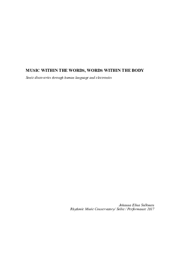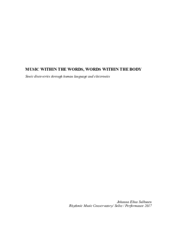 MUSIC WITHIN THE WORDS, WORDS WITHIN THE BODY Sonic discoveries through human language and electronics