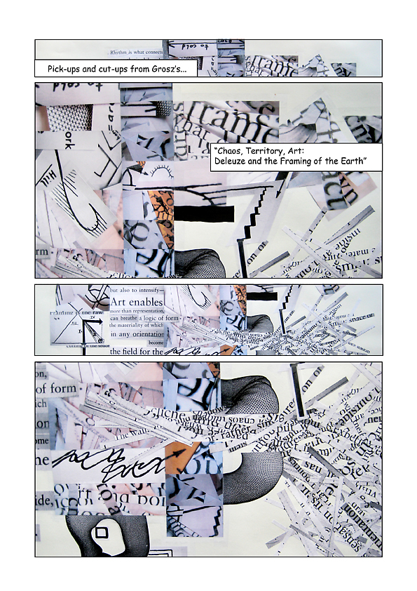 Diagrammatic Praxis was a post-doctoral research process drawing upon applied concepts of the diagram previously explored in my dissertation, ‘The Translocal Event and the Polyrhythmic Diagram.’ As a researcher in the Art, Research, Theory and Innovation (ARTI) lectoraat of the Amsterdam School for the Arts, the primary focus was on image/text relationality as a vehicle for investigating applied theoretical practice in artistic processes. I worked with Foucault’s concept of the diagram, rejuvenated by Deleuze as abstract machine and Massumi’s concept of the biogram. Thinking the diagram entails negotiating several registers of relations between forces immanent to a field of experience. A diagrammatic practice emphasizes movement with and through the dynamic intensities of an inter-disciplinary field, instantiating the commingled performativity of theory and artmaking through fielding. It experientially engages energetic transductions between unformed matter and unformalised function, between the discursive and the non-discursive, the visible and articulable, content and expression, chaos and order, catastrophe and rhythm. The research aims to contribute to emerging discourse on artistic research as experimental methods of reading and writing are interwoven with artmaking processes. Additionally, the current wave of discourse on vibrant materiality, object ontologies and thing theory resonate with collaborative, diagrammatic methods. Diagrammatic praxis is situated within interdisciplinary investigations of the collaborative dynamics of mattering. How, as Bruno Latour has pointed out, matters of fact emanate as matters of concern. How objects, things, performers and publics might generate the felt concerns of the event. This proposition of gathering, through an intricate mesh of mattering inclusive of things at all scales of experience, from quarks to cosmos, from facts to fictions excites what matters as the experience of the relational dynamics of the event and its emerging concerns. The material presented in JAR is a compilation of a fraction of the image and text elements from a three-year process, shaped as a graphic essay. Works include graphic translations, works on paper and published texts created from an integral diagrammatic method.