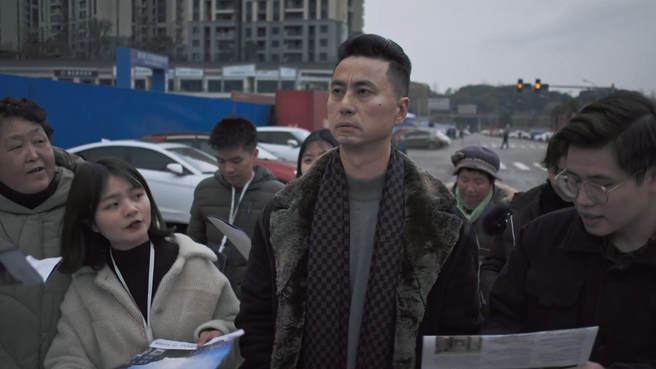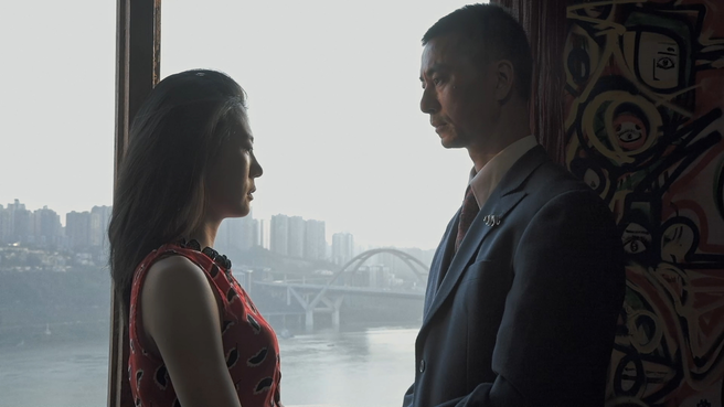 Ghost story of urbanization. The last hotel, which was condemned to demolition like the rest of the town, is still standing. The owner Charles imagines himself in the scenes of a Hollywood classic with a female visitor. The distorting mirror play of documentary and fiction, in which construction workers, investors, and real estate agents appear, takes place in contemporary China, where cities are built entirely based on speculation, dictated by the fictions of capitalism.