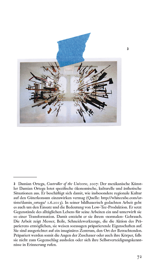 The practice of artists flows productively in research projects and individual ques-tions lead to collective research results. The entanglement of personally motivated artistic work and institutionalized interdisciplinary collaborations is perceived as an opportunity for artistic research, for which the free development of approaches and topics is essential. In five series of images different procedures of individual and collective research have been tested in practice and reflected. Making and thinking go hand in hand and the individual contributions can be rediscovered in common knowledge.