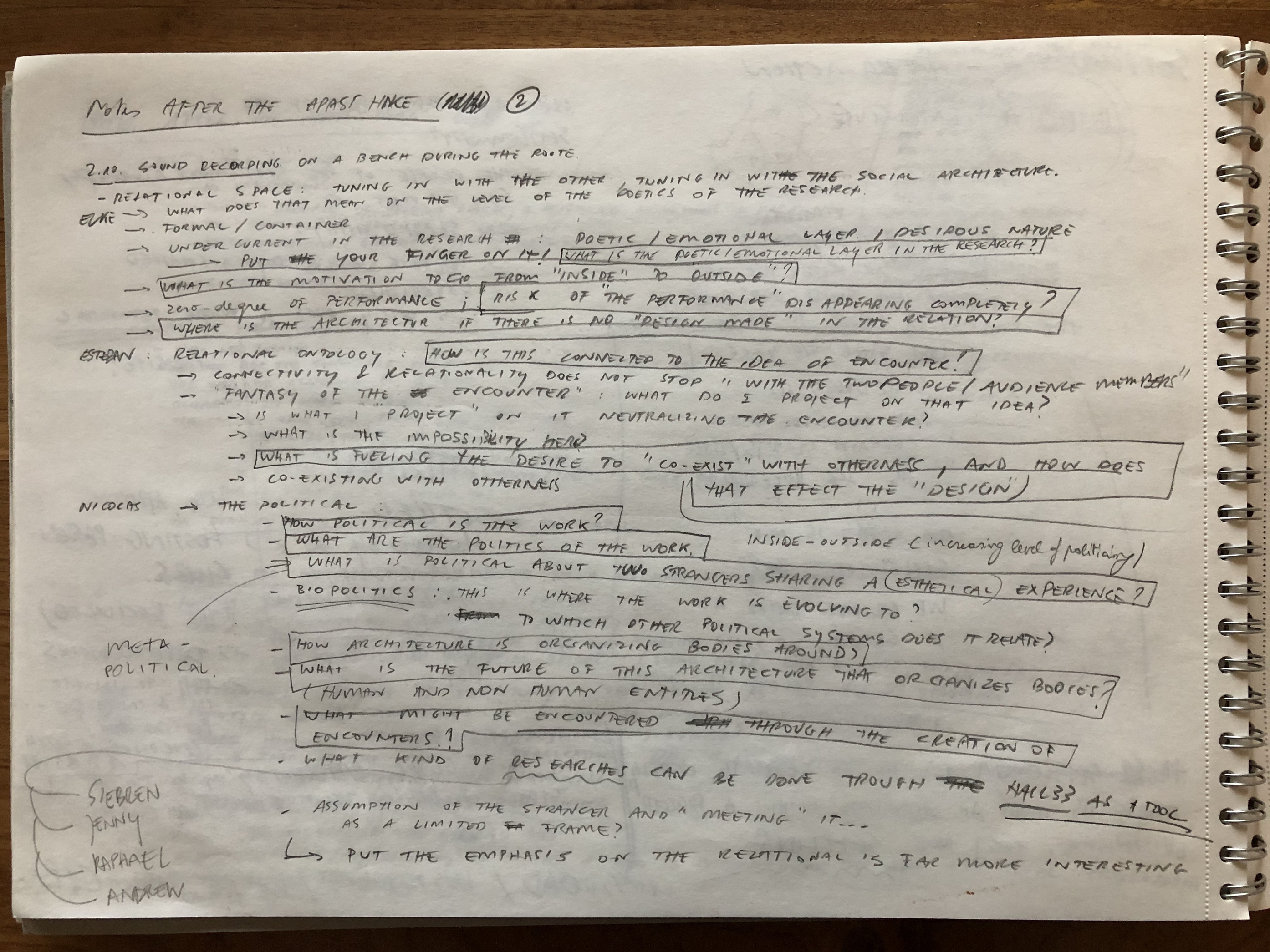 Why do we care about the politicalness of the work? And where do we want to see the politicalness? On the level of the representation of the idea of ‘encounter’? Or on the personal dialogical level.