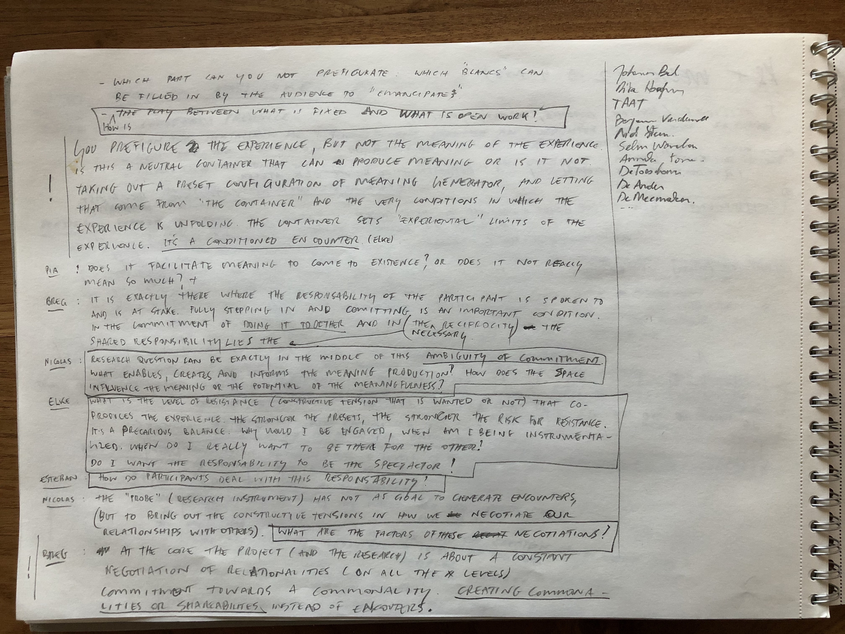 Do we care about the impact of ‘the idea’ of the work (putting the possibility of the encounter, or the encounter as an idea to the foreground)?