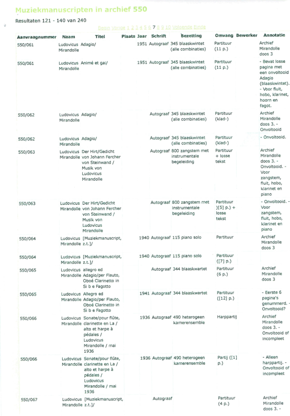 The collection of music by Ludovicus Mirandolle, was offered to the Nederlands Muziek Instituut, who added it to their archives.5 6