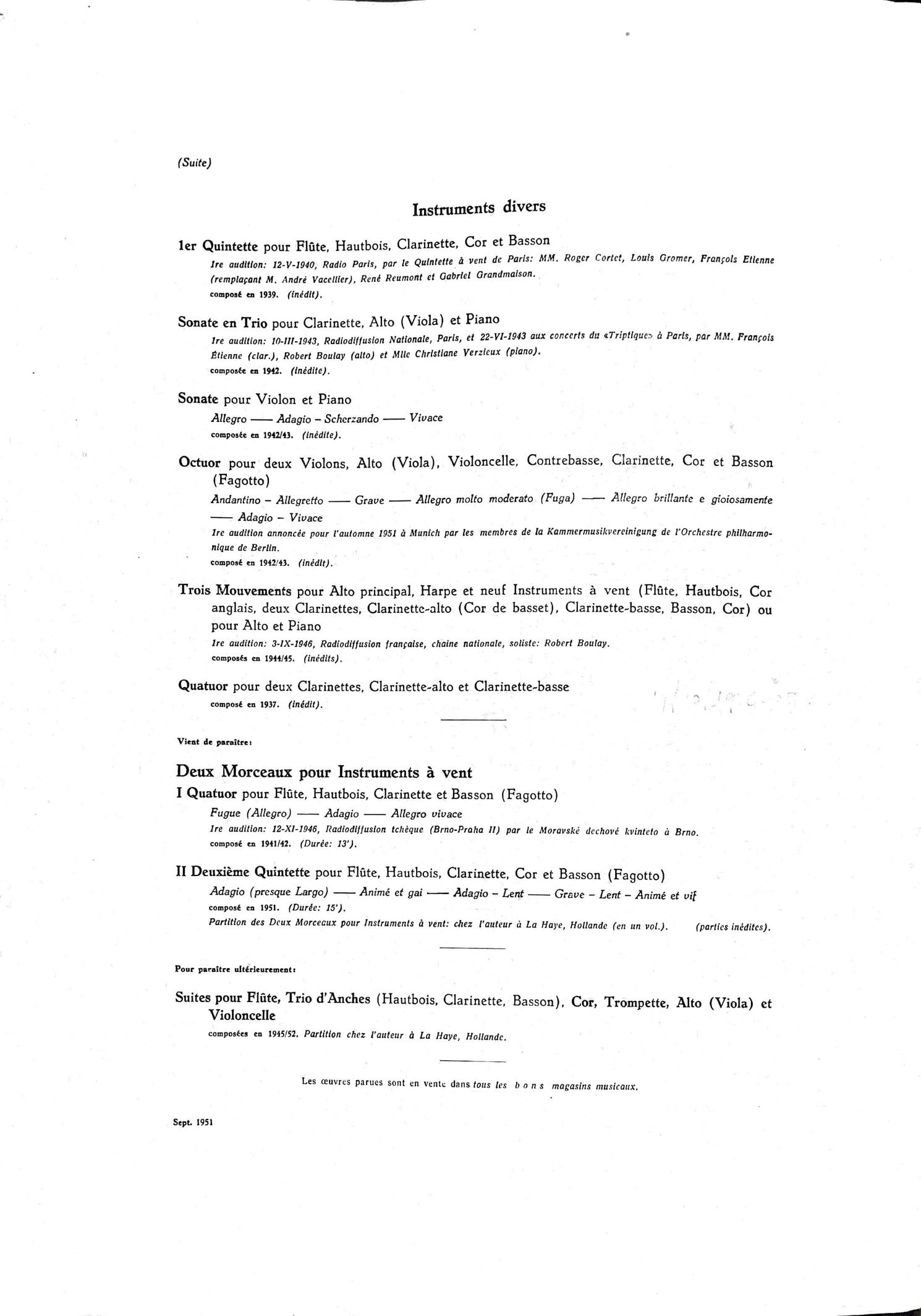 “Trois Mouvements…3-IX-1946…Radiodiffusion francaise…”
