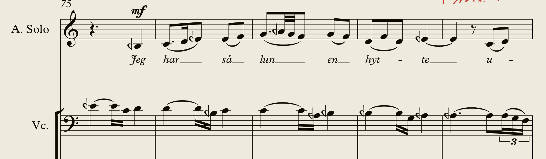 Repetisjonslogg: Jon Øivinds stykker er skrevet med utgangspunkt i likesvevende temperert kvarttoneskala, mens den opprinnelige salmen er basert på folkemusikalsk renstemthet. Vi har forsøkt å finne en måte å kombinere de to tenkemåtene, så cello veksler mellom kvarttoner når alene, og renstemte intervaller i samspillet med stemmen.