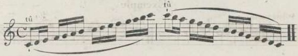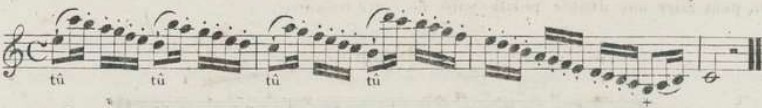 It is also interesting to notice that Berr emphasizes the importance of working assiduously on fast tempo passages where all notes have to be detached. He explains that such passages are often found in "modern" music, and shows in examples excerpts from Rossini's works.32 (example 11)