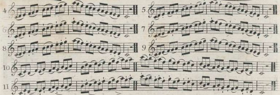 According to other authors, this articulation represents the least separated detached notes, that is to say, the longest possible. Walckiers explains that the Tongue strokes are so soft, that there is almost no separation between the different notes.19This explanation is also found in Dauprat's method20 or in Brod's Méthode pour le hautbois (c.1826).21