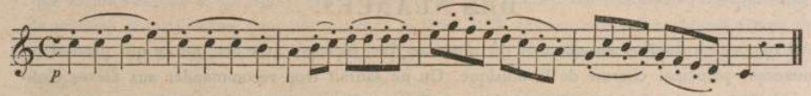 This idea of dryness is also found in Dauprat's Méthode de cor-alto et cor- basse (1824) and in Berr's treatise. They specify that this articulation has the effect of shortening the notes. Consequently, the articulated notes are followed by a silence taken on their values.8 9(example 3)