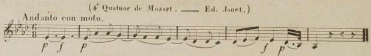 Garaudé's example shows that this way of executing the sons coupés, by stressing the first note, was already used in the 18th century, at least by some Italian singers. This practice is not explained in the first corpus of Conservatory methods and is only detailed in later methods. A few years after Frédéric Berr, Klosé also wrote a part of his clarinet method about sons coupés and notes jetées. He suggests that, in general, all notes slurred two by two, even if they are not followed by a rest, can be considered as sons coupés or notes jetées.50It seems that whatever the notation, the proportion of inflection on the first note and the way of leaving the second will depend on the character of the musical passage.