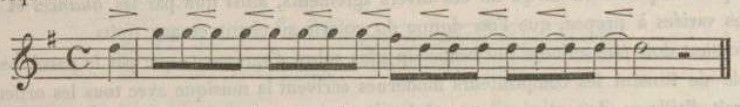 The need to find the right proportion in the application of this principle appears fundamental. This proportion depends on the length of the note but also on the character and general dynamic of the musical passage. This last point will be discussed in the last part of this chapter. Moreover, despite this "rule without exception", priority can also be given to a more direct attack as described by Frédéric Berr and Garaudé. (see part “specific accent” of this chapter).
