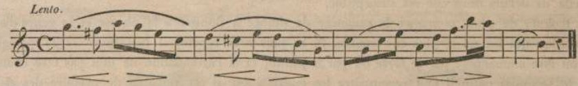 The way of performing syncopated notes is not particularly detailed by the different authors in the first corpus of Conservatory methods. However, some examples suggest that they should be performed with a specific dynamic, in Lefèvre's method for instance.40 He suggests starting these notes stronger before decreasing the sound.