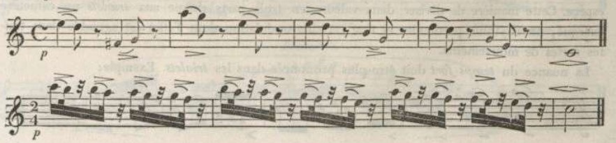 In later writings, the execution of syncopations is often the subject of more detailed explanations and several examples focused on this issue can be found. Frédéric Berr may have been influenced by Dauprat's Méthode de cor-alto et cor-basse (1824). Indeed, we find literally the same explanation in both tutors: