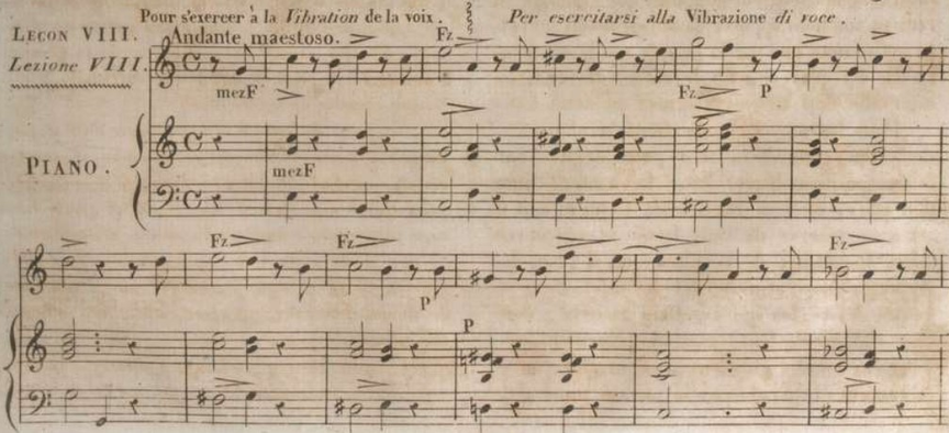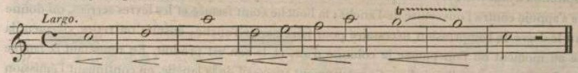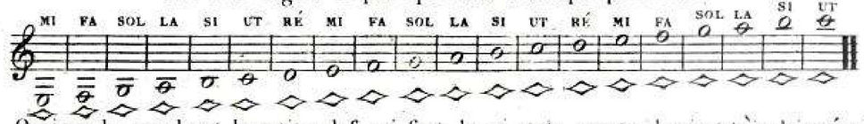 One of the exercises proposed to the singers is to perform sons filés lasting 20 seconds on each note of the scale. An inhalation separates each note. It is interesting to notice that Lefèvre proposes the same exercise for beginners, starting with the notes of the Chalumeau register. The range of the scale should increase gradually, as the student progresses.14