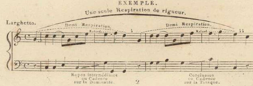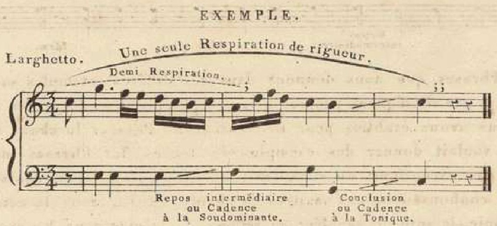 Thus, the singing methods and wind instrument methods of the early 19th century show a very clear link between phrasing and breathing. The full and half breathing, placed according to the Repos and their degree of strength, helps to underline the structure of the music. It is divided into several phrases, themselves frequently composed of several sub-divisions, sometimes called Members.