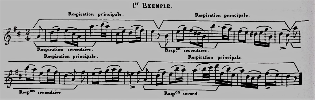 For singing and wind instruments, the art of phrasing is linked to breathing and especially to the ability to know how to place the breaths in the right places according to the structure of the music.5 By properly placing the breaths, the performer has the means to mark the different Repos, their degree of strength, and therefore the organisation of the music.