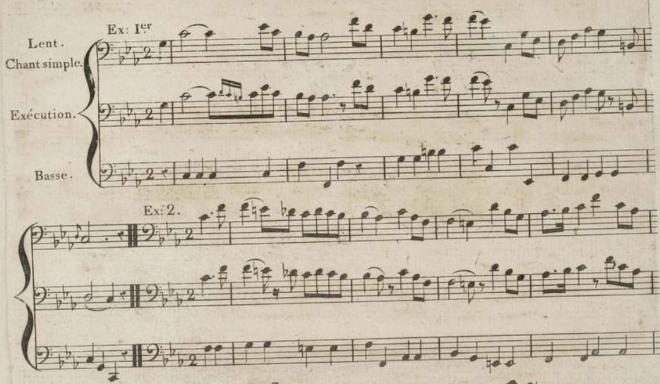 This principle is widespread in all the singing and wind instrument methods of the early 19th century. Several musical examples are proposed by the different authors. In the first example, Mengozzi indicates the full breathing with the sign ;; and the optional half-breathing with the sign ;.