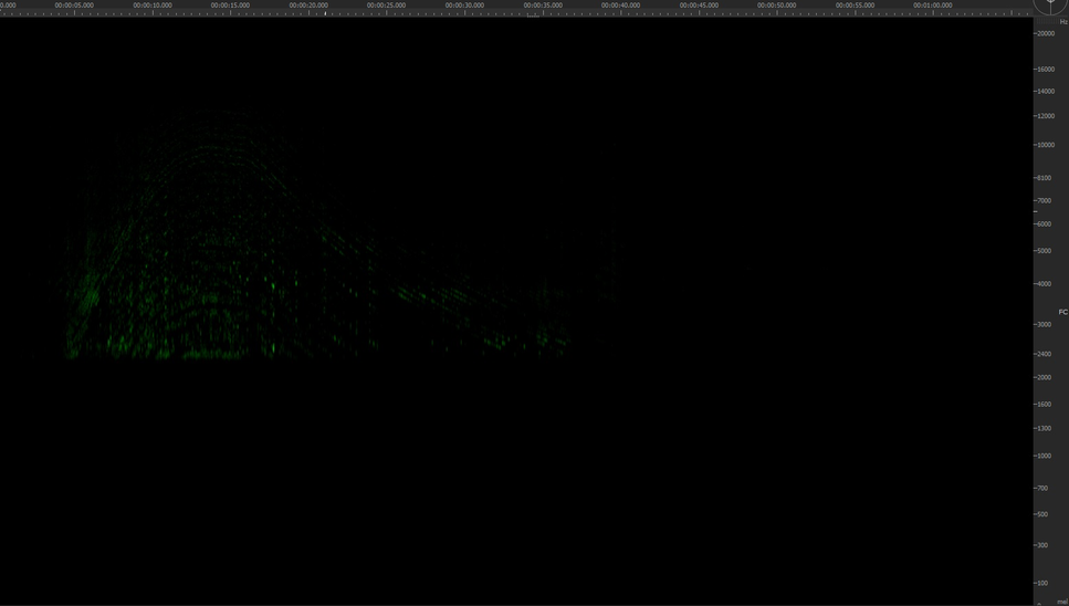 Druga faza rozwoju formalnego skupia się na nieharmonicznych elementach dźwięków i nazywanych przeze mnie przekornie „podźwiękach” syreny. Pracując nad nagraniem jednego pełnego okresu glissanda syreny (ruch w górę i w dół), odfiltrowałam wszystkie wyraźnie widoczne harmoniczne elementy ruchu glissanda i odkryłam, że pozostały „szum” staje się wysoko brzmiącym mamrotaniem, niezrozumiałym bełkotem brzmień, matową grą odcieni, wydobytą z istoty dźwięku syreny. To przefiltrowane nagranie zestawiłam ze światem harmonicznym widma Fis, zdominowanym przez składowe subharmoniczne, co w pewnym sensie spowalnia i osadza ekspresyjnie narrację w kompozycji, tworząc bardzo subtelny, powoli rozwijający się proces ponownego modulowania ku początkowej harmoniczności brzmień w utworze.