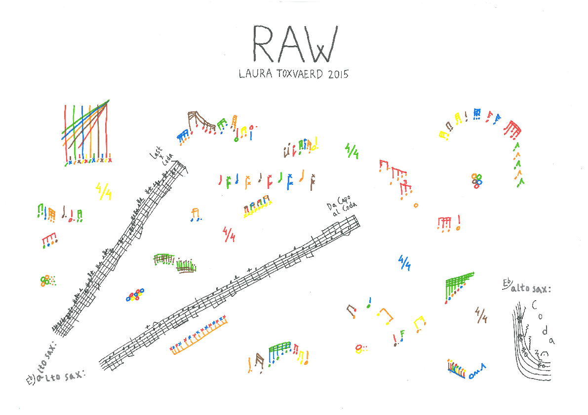 When I created the composition, RAW, I therefore replaced the metronomic grooving pulse with the feeling of an abstract groove. Concerning my original plan, I kept the lines of the melodic material intact, as sonically recognizable fragments.