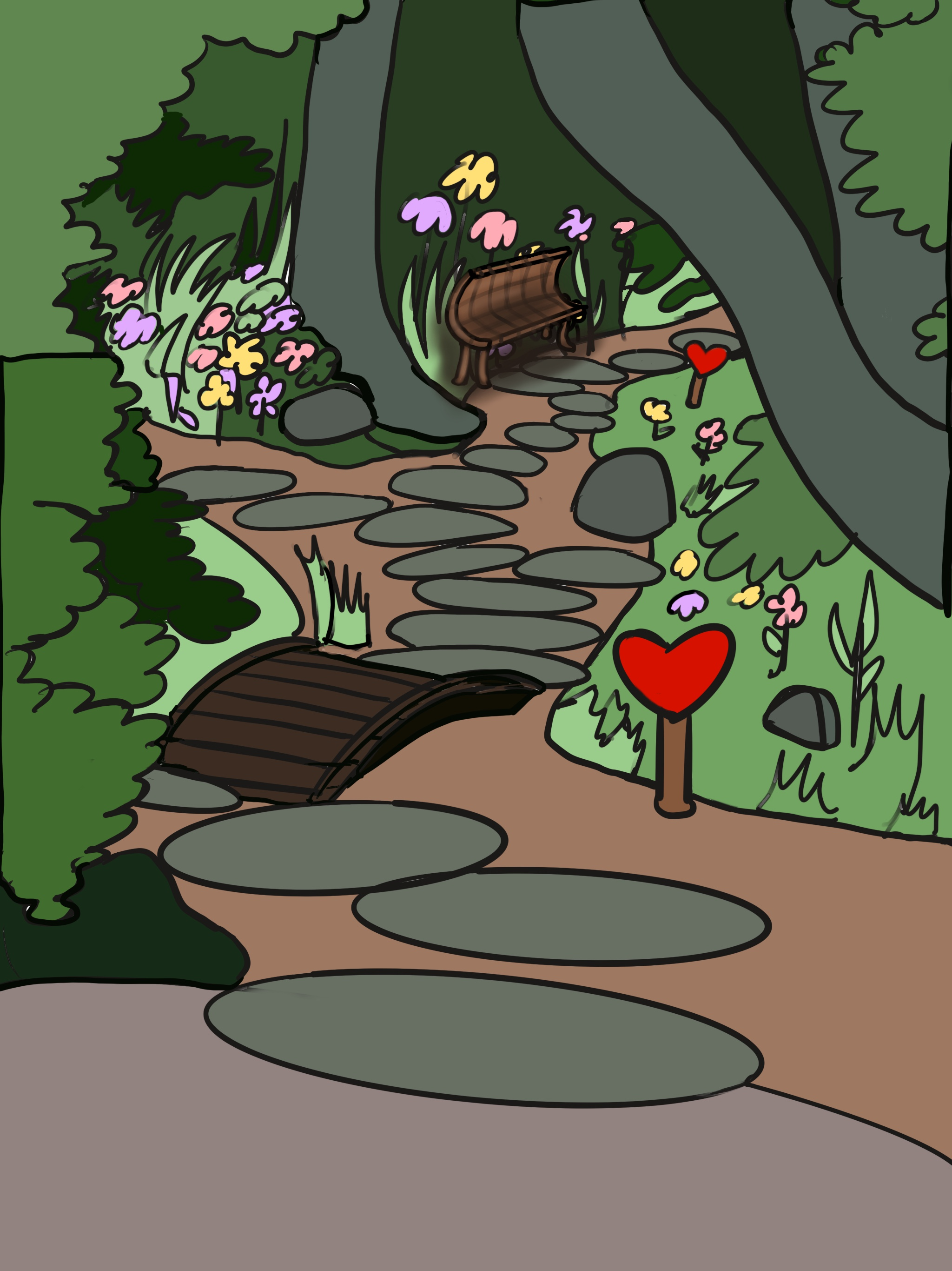 Det er tenkt at stien skal inneholde elementer slik som hvileplasser, skilting, gode kontraster, forskjellige materialer/overflater og blomster/planter. Siden målgruppen hovedsakelig er eldre mennesker vil den fysiske helsen være noe redusert, derfor er det viktig å installere diverse områder hvor det er mulighet for å hvile. Stien er tenkt at skal være i et annet materiale enn bakken, slik at det skapes kontrast som gjør at det er enklere å finne riktig vei. Det vil også fokuseres på at stien ikke er for ujevn eller har for høy stigning, som kan skape ubalanse hos de eldre, i tillegg vil vi gjøre løypen tilgjengelig for rullestolbrukere. I tillegg markeres stien med røde merker (signal farge) slik at de eldre skal få en følelse av at de befinne seg på riktig plass. Langs stien skal det også være diverse planter og blomster som kan stimulere alle sansene: følelse, lukt, syn og smak. Roser, blant annet, vil stimulere luktesansen og synet, mens rips og bringebærbusker kan stimulere smakssansen.