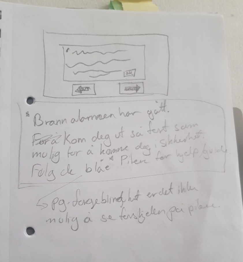 ||Brannalarmen har gått. Kom deg ut så fort som mulig for å komme deg i sikkerhet. Følg de blå pilene for hjelp. ||