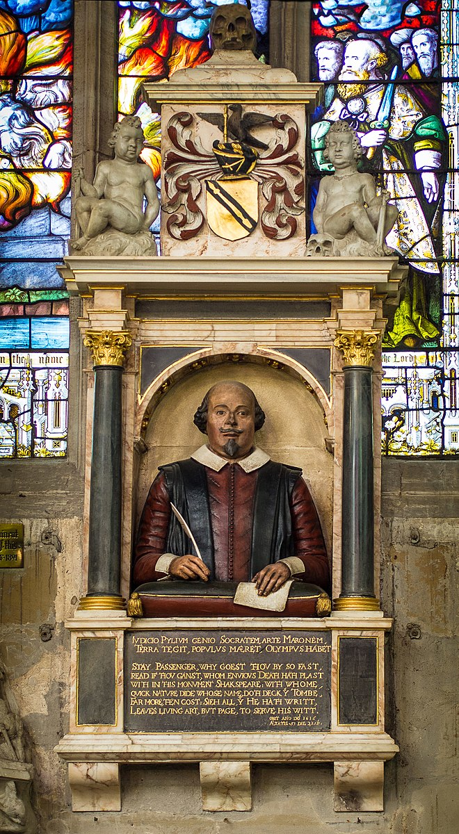 Droeshout engraving: portrait of William Shakespeare engraved by Martin Droeshout as the frontispiece for the title page of the First Folio collection of Shakespeare's plays, published in 1623