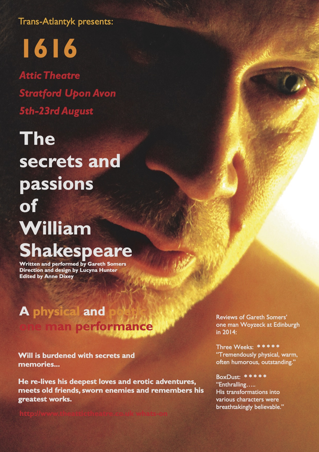 2016 was the 400th anniversary of William Shakespeare's death. In the light of growing nationalism and isolationism in Europe, I made it my task to explore this heavily freighted cultural symbol in the view that our mythos of 'great' national figures has a key ideological relationship with recreations of our cultural identity.