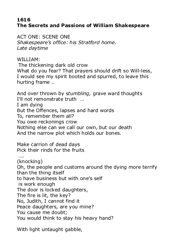 This final text of 1616 and some earlier iterations shown here, embody various conflations of: research, imagination, thought experiments, fictional dramatisations and what Robert Graves describes as poetic enquiry.