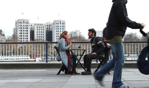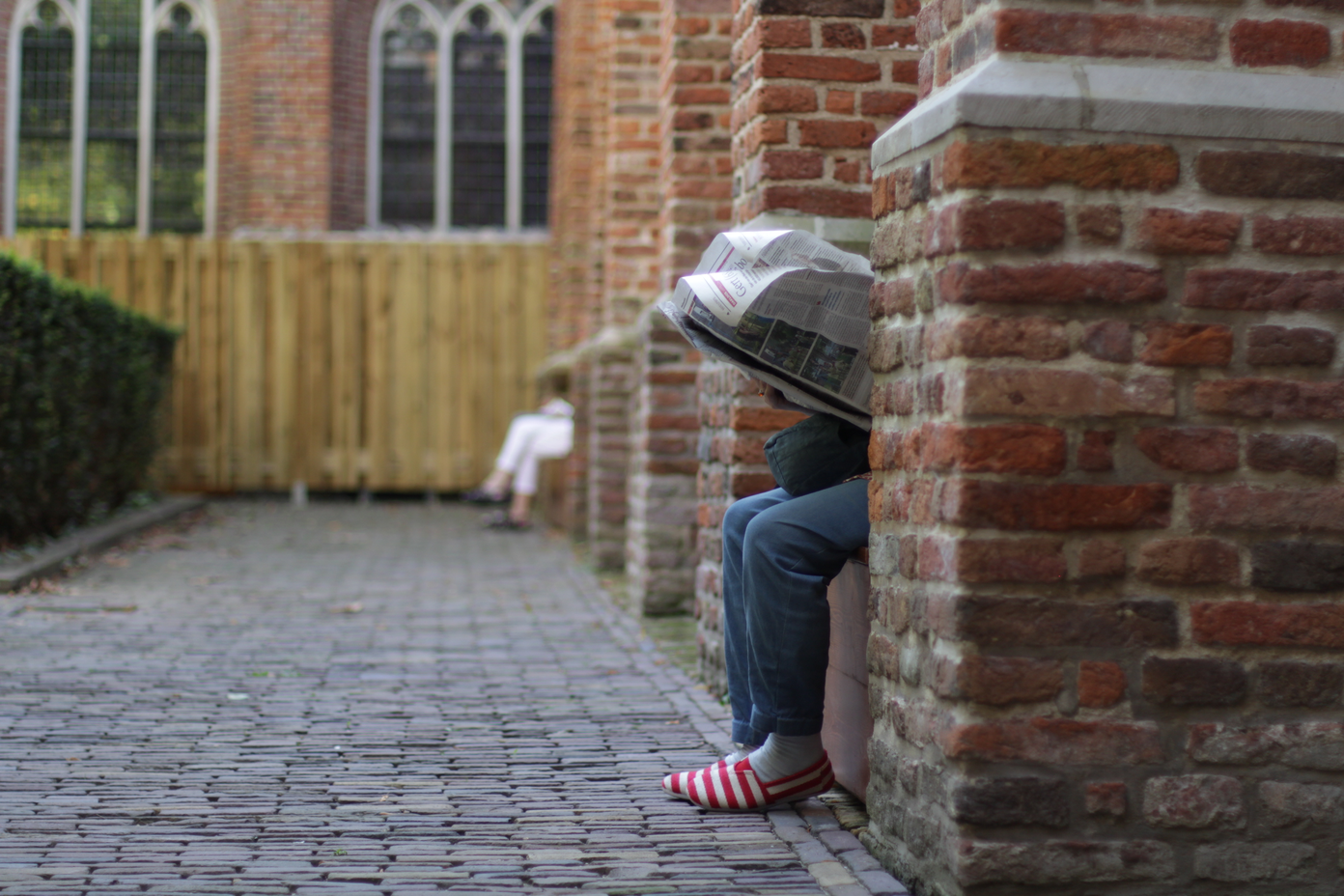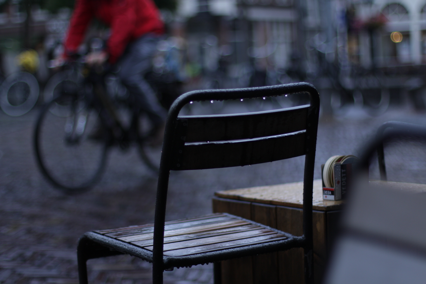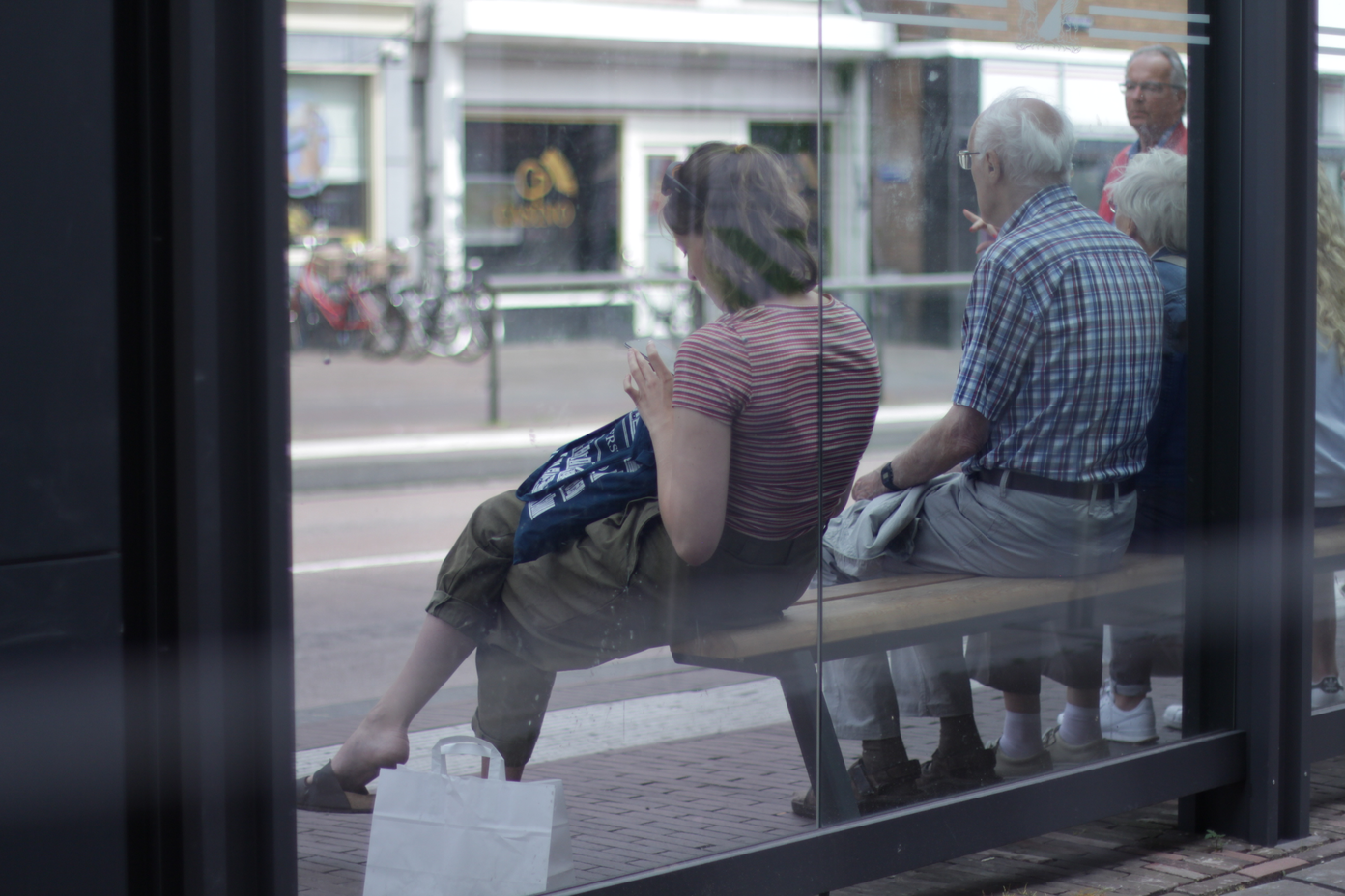 Spaces where people go to be alone, to have some calm during the day: park benches, churches, temples, cafes, seats in a library, the canal...
