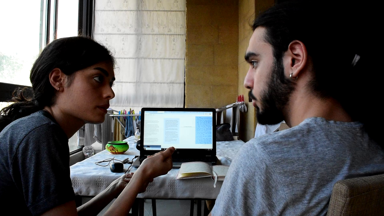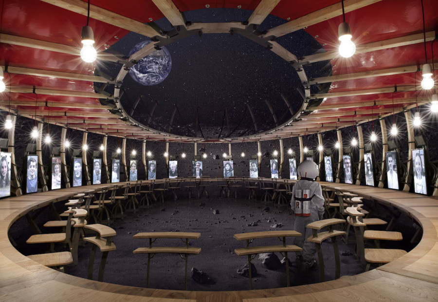 In this one, thirty kids enter a space and each sit on a chair facing a screen, which will display the story of another kid in the world.