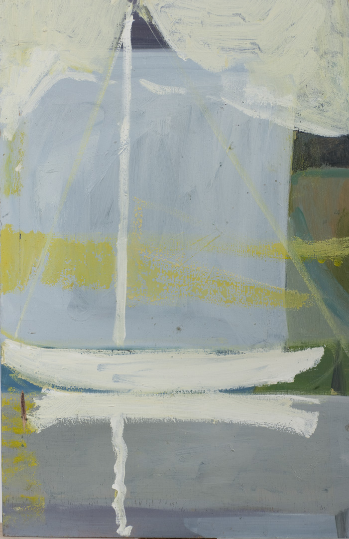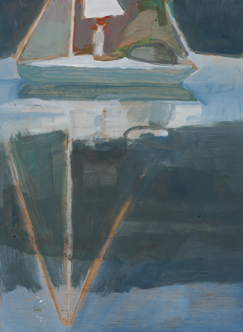 While sailors were putting their boats in the water and going over the rigs, I heard on the radio that the explorer Jarle Andhøy had lost his boat and his crew in the Antarctic. This juxtaposition of events informed the painting Bastard, which is dominated by the reflection of a boat in the water. A person stands on deck with a heavy load. These kinds of simultaneous occurrences blurred the distinction between painting from direct observation and painting from memory and imagination.