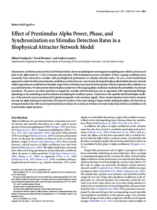 Finally got around reading the paper, which helps a lot (but also raises new questions, a list of which I have compiled for my meeting with Pawel on Friday): Mikael Lundqvist,Pawel Herman, and Anders Lansner, "Effect of Prestimulus Alpha Power, Phase, and Synchronization on Stimulus Detection Rates in a Biophysical Attractor Network Model", The Journal of Neuroscience, July 17, 2013, 33(29):11817–11824