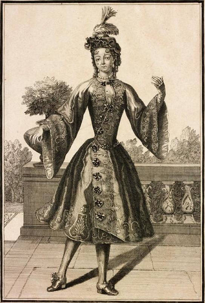 The grand siècle in France, which corresponds to the reign of Louis XIV (1643–1715), was obsessed with aesthetics; it is thus unsurprising that this period saw the birth of la belle danse (Louison-Lassablière 2007: 137). This style of dance, developed at the court of Louis le Grand in the 1650–60s, was seen as an expression of the moral, social, and aesthetic criteria that the Sun King wanted to impose as an ideal image of his reign. In the same way that nature was cultivated in the jardin à la française, the body was to be tempered by reason and will, conforming to the contemporary ideals of elegance, grace, majesty, and noblesse. These were thought of as originating in geometrical rules governing the world on all levels – from the celestial bodies, via the body of the state, to the inner workings of the human body. Embodying these rules was seen as the expression of a great inner quality in a human being (Russell 2012: 293); and, since the influence could work both ways, educating one’s body by dancing was in itself a moral education and an uplifting of the spirit (ibid.: 294).