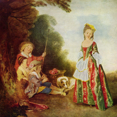 It is probable that both types originated with the Italian corrente of the sixteenth century. This dance is characterised by a rapid tempo and alternating hops and steps. At some point in the seventeenth century, the French courante developed into a slower, elegant and dignified dance that became Louis XIV’s favourite. Unfortunately, we have no choreographic sources for French courantes before 1700, by which time it was already going out of fashion. It was nevertheless still taught by the dancing masters, and regarded as the best way to acquire a good foundation in the art of dancing.