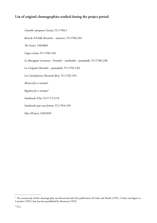 This exposition presents the artistic research project 'Zum Spielen und zum Tantzen: A Kinaesthetic Exploration of the Bach Cello Suites through Studies in Baroque Choreography’, undertaken at the Norwegian Academy of Music between 2009 and 2012. I offer a historical background, discuss the method used, and present the artistic results in the form of video and audio files. The dance titles of J. S. Bach's cello suites, derived from French court dance, clearly meant more to the composer than just abstract references. In Bach's time, dance practice permeated social life, and an intimate knowledge of fashionable dance forms was indispensable for a musician. The movements and gestures of these dances inevitably had a profound influence on performance style. I have investigated how the practice of Baroque dance could influence my interpretation of the Bach suites. Learning the essentials of this style and its original choreographies and frequently accompanying dancing, I also explored the dance aspect of the cello suites by way of experiments with historical tempos as well as melodic and rhythmic reductions of the musical material. Through this project, I hope to make a worthy contribution to the development of performance practice studies, offering a recontextualisation of Bach’s work that emphasises the close links between the expressive gestures of music and dance. The results have both artistic and pedagogic potential as tools to discover essential aspects of dance character in Baroque music.