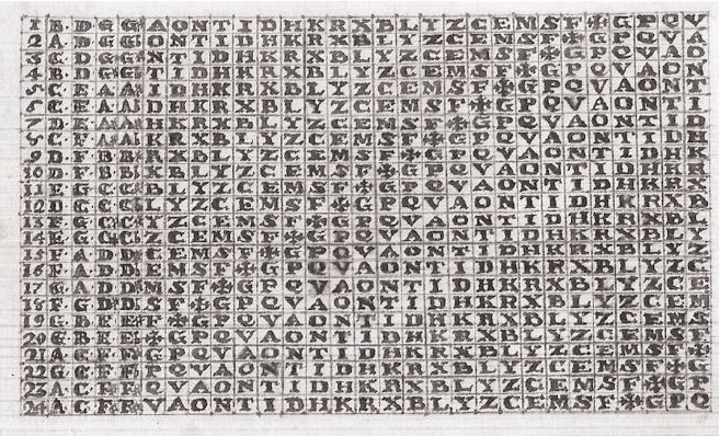 Sanguinazzo, about whom we have very poor informations unfortunatly, left an image of himself quite enigmatic and eclectic. Through the clues scattered on the Este-Obizzi Collection it appears his predilection for letter riddles: he signed his own sonatas for violin, cello or viol, E.M.40-44 spelling his name backwards - Olocin Ozzaniugnas, specifing also “Diletante di Violoncello” [cello amateur]; on the back of the title page of the copy of the first edition of Vivaldi's twelve violin sonatas op. 2 he pasted an handwritten 'magic square', not completly decoded so far (Fig. 18).