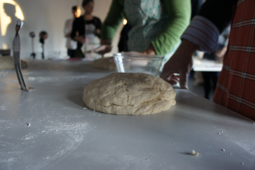 To become embodied with the ingredients it was important to find a comfortable rhythm of work with dough. For one participant the loud smashing sounds, sweating and occasional loud laughing of participants was experienced as very aggressive. Another participant allowed himself to indulge in the kneading, trusting the materials to develop with his activity: